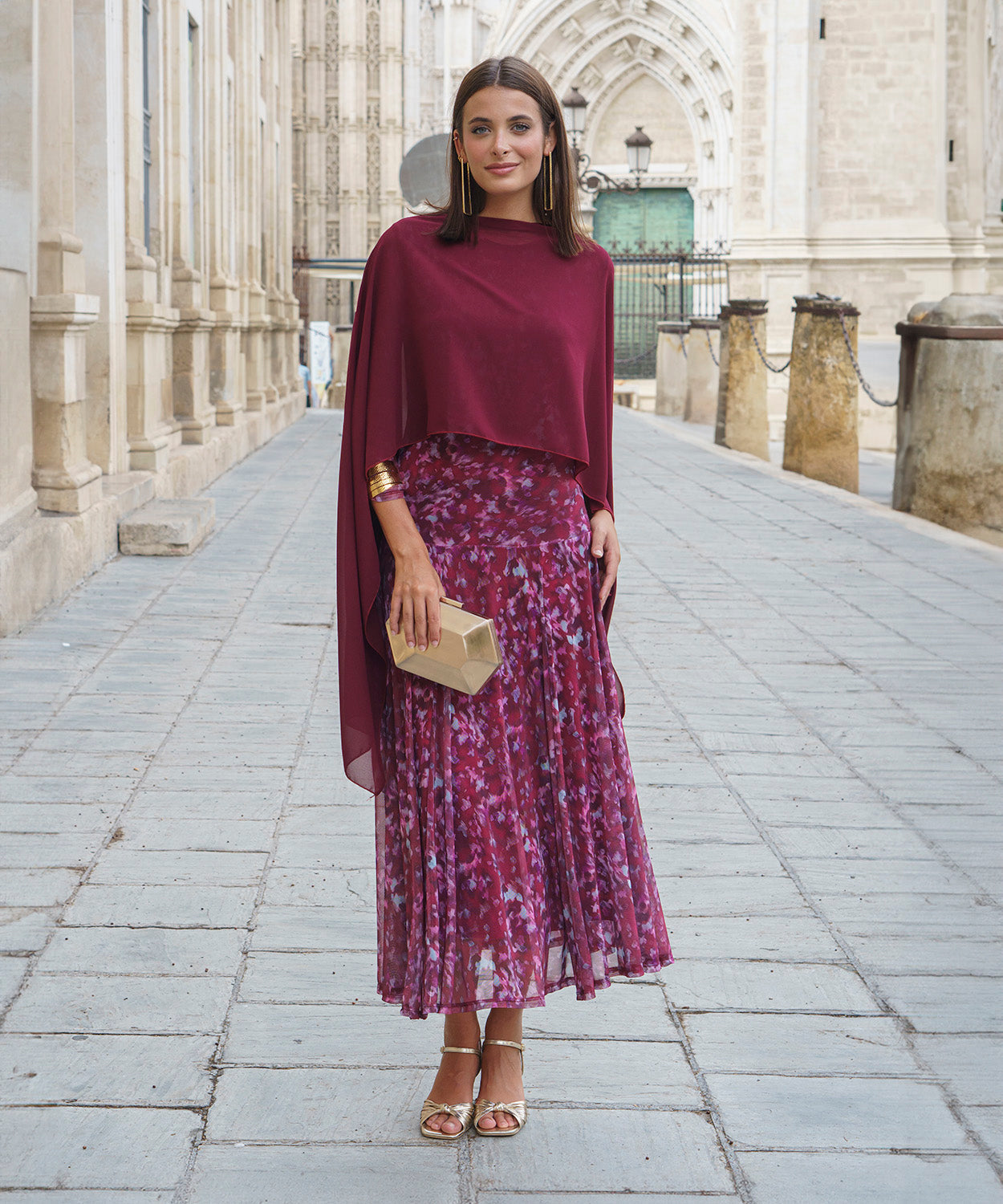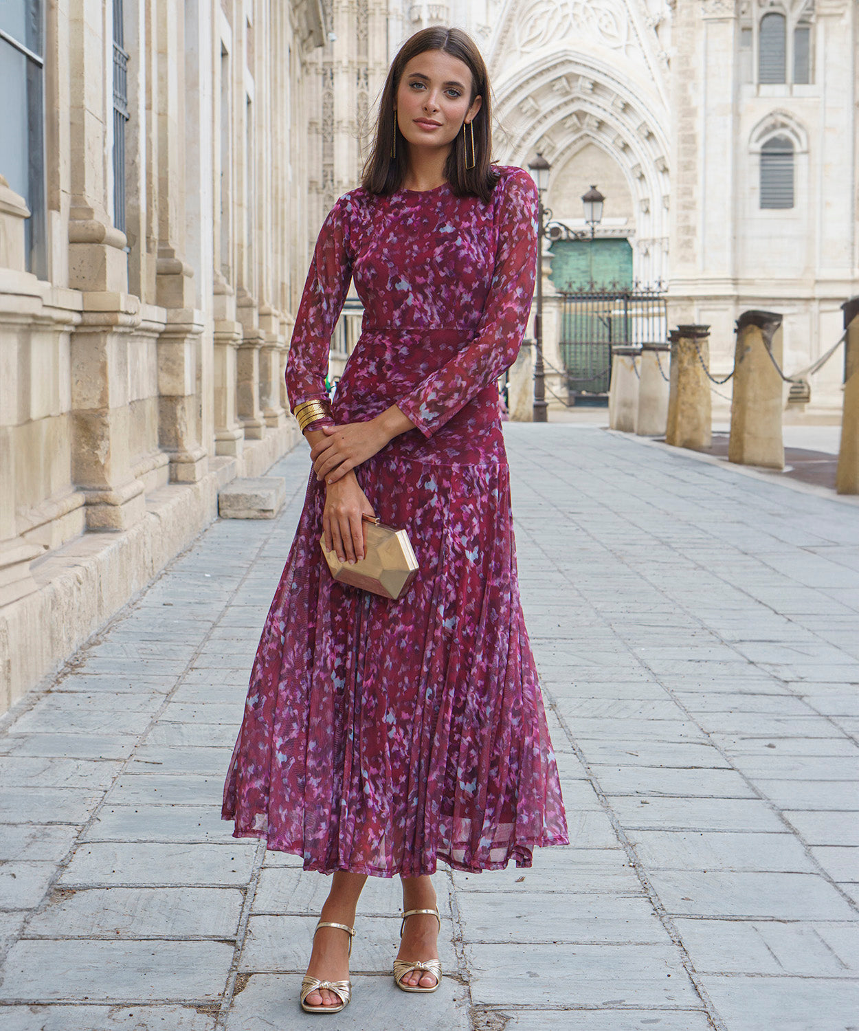 • Diseño atemporal: corte evasé con falda fluida y mangas largas transparentes que aportan estilo y movimiento.