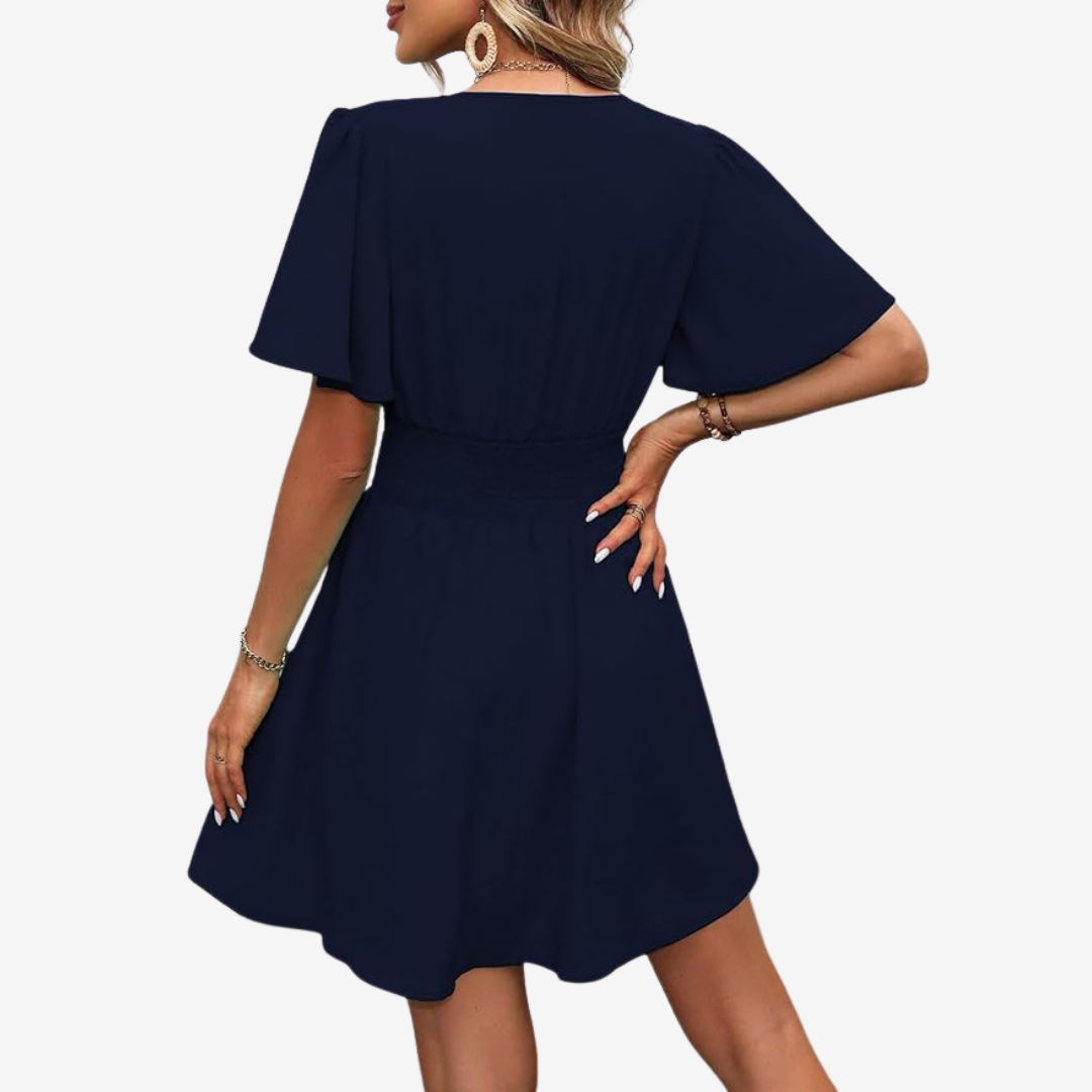 Découvrez Éviana™, une robe droite chic et séduisante, parfaite pour les soirées d'été comme pour les sorties décontractées. Dotée de manches lanterne romantiques et d'un décolleté en V ludique, cette robe se cintre gracieusement à la taille avant de se transformer en une jupe légèrement plissée. Déclinée dans une collection de riches tons de bijoux et d'imprimés floraux, Éviana™ incarne l'élégance naturelle et la polyvalence de jour comme de nuit. Associez-la à des sandales pour un brunch décontracté ou sublimez-la avec des bijoux et des talons pour un rendez-vous galant.