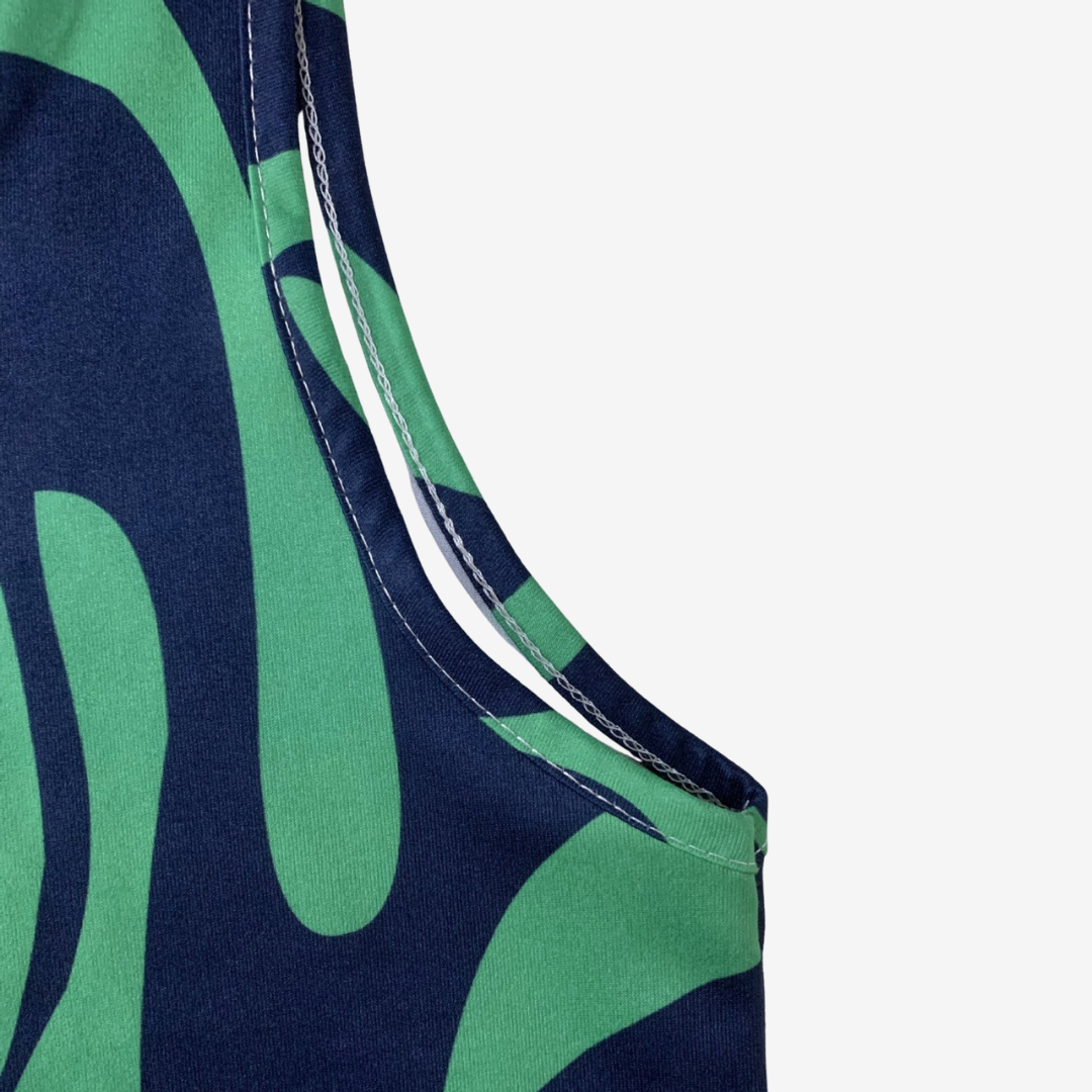 • Imprimé abstrait accrocheur dans des tons verts et bleu marine audacieux