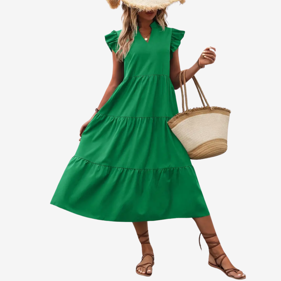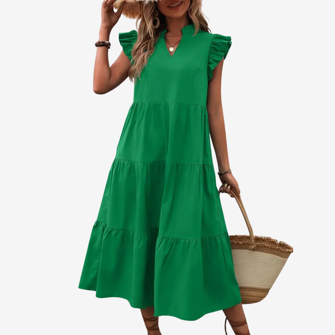 Adoptez une élégance intemporelle avec Vionna™, la robe longue évasée sans manches qui attire tous les regards grâce à ses lignes épurées et ses couleurs vibrantes. Sa silhouette trapèze fluide vous invite à la liberté de mouvement, tandis que son tissu doux et respirant assure un confort optimal tout au long de la journée. Idéale pour les balades ensoleillées au marché, les garden-parties ou les escapades en bord de mer.