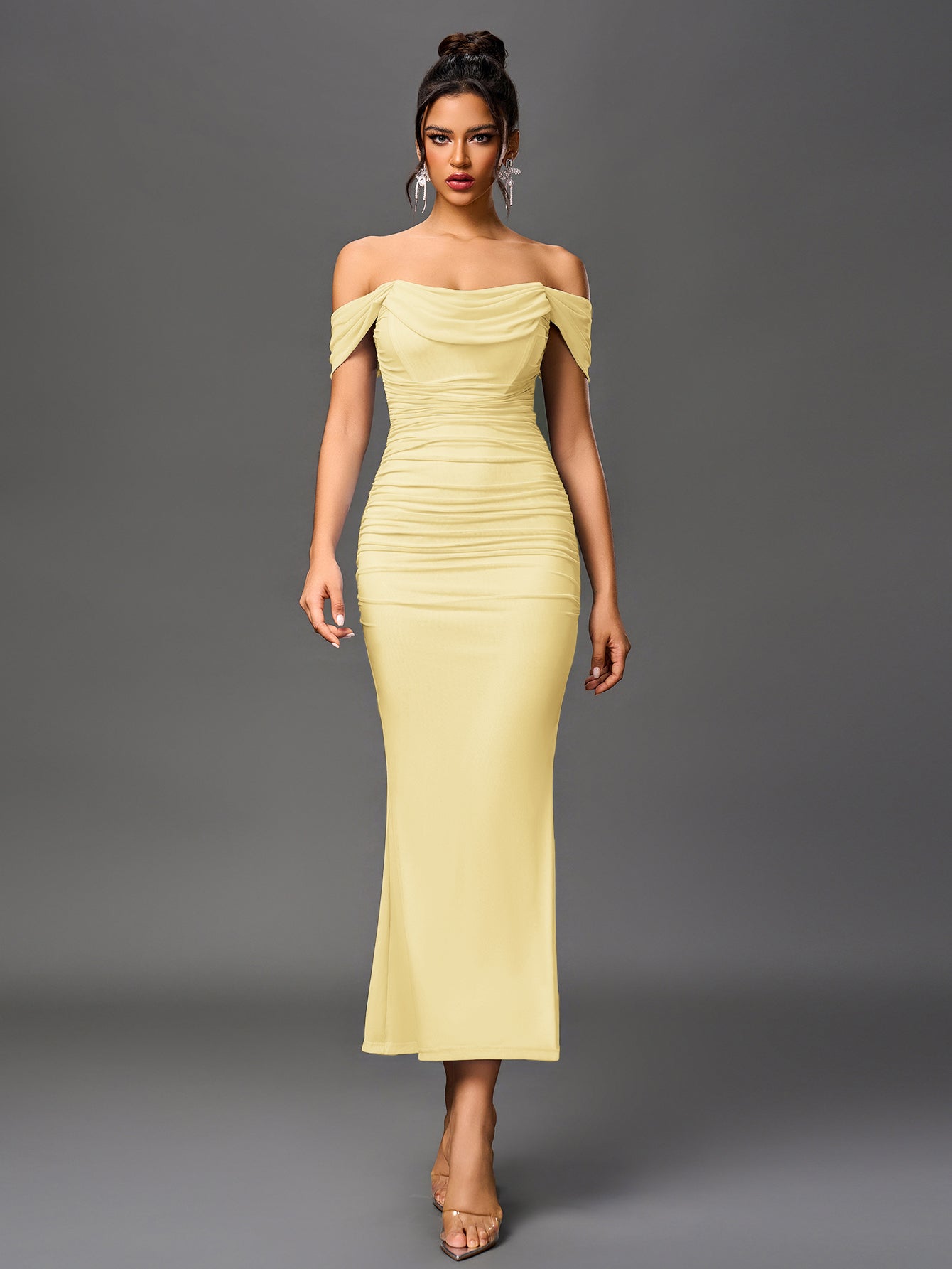 Robe À Épaules Dénudées, Froncée & Zippée Dans Le Dos